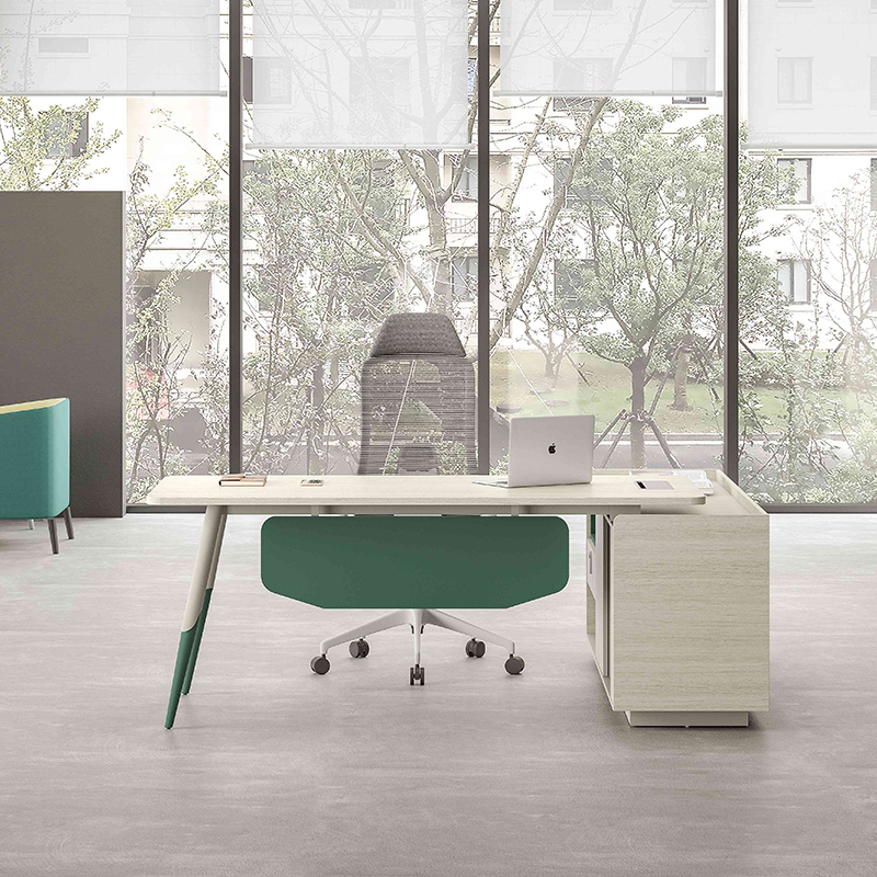 1、基材:符合E0級標(biāo)準(zhǔn)的MFC板; 2、主臺面直紋灰橡,同色封邊; 3、副柜前、后側(cè)板、背板為直紋灰橡; 4、擋板和活動木框?yàn)殚蠙炀G色,其余子午灰 色;5、五金臺腳子午灰+橄欖綠; 6、班臺可左右互換。